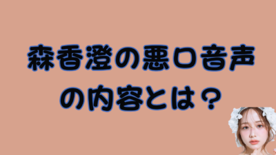 森香澄の悪口音声の内容とは?流出の経緯と現在を徹底解説します! https://x.com/mori_kasumi_/status/1936062075748655120/photo/1 フリーアナウンサーとして、今やテレビで見ない日はないほど活躍されている森香澄さん。 しかし、森香...